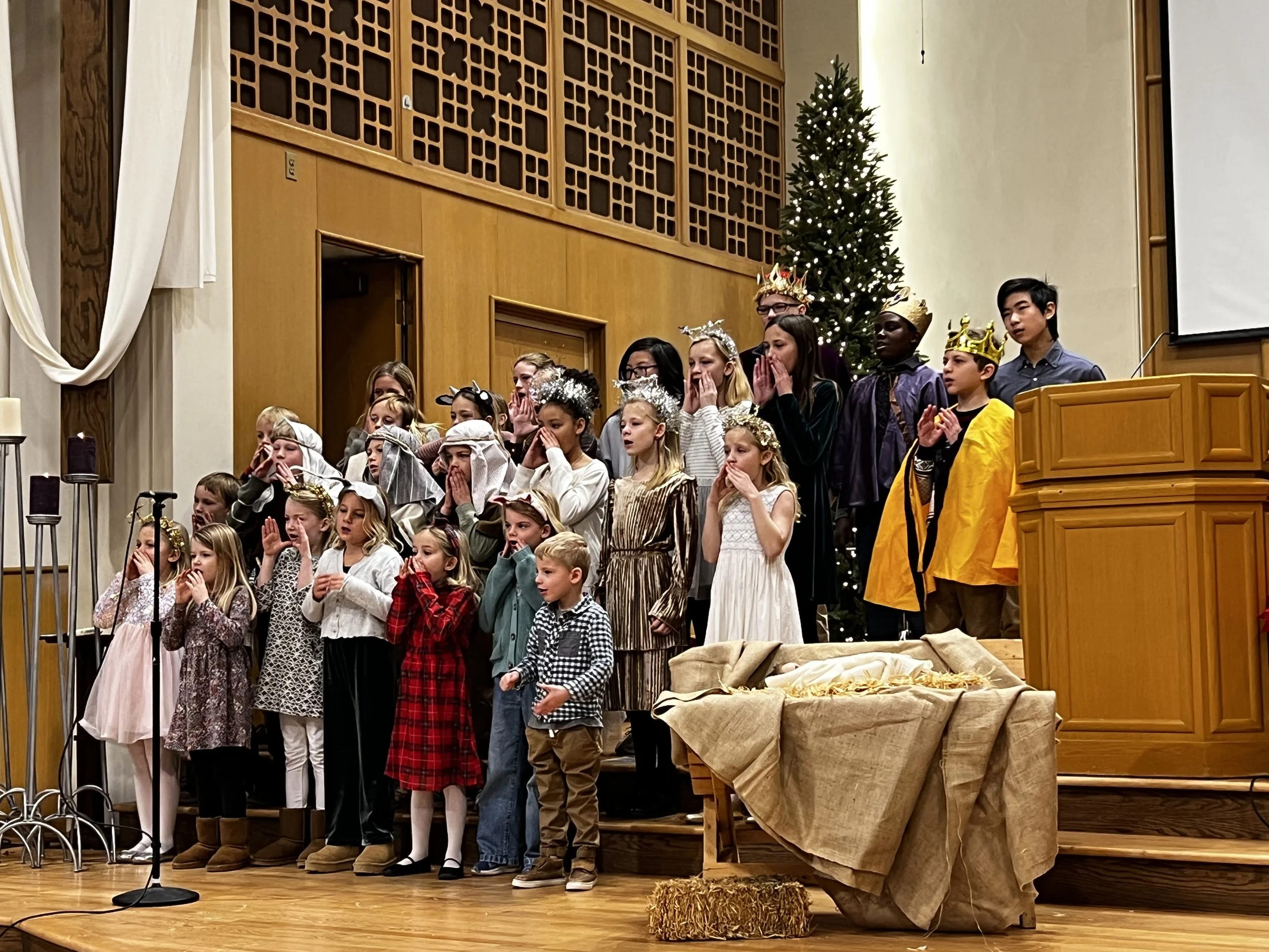 Part way through the service, children ages 4 through 1st grade come forward for a short children’s message and blessing before being dismissed to Sunday Stations.